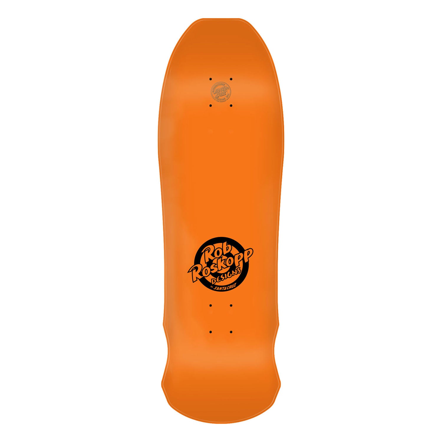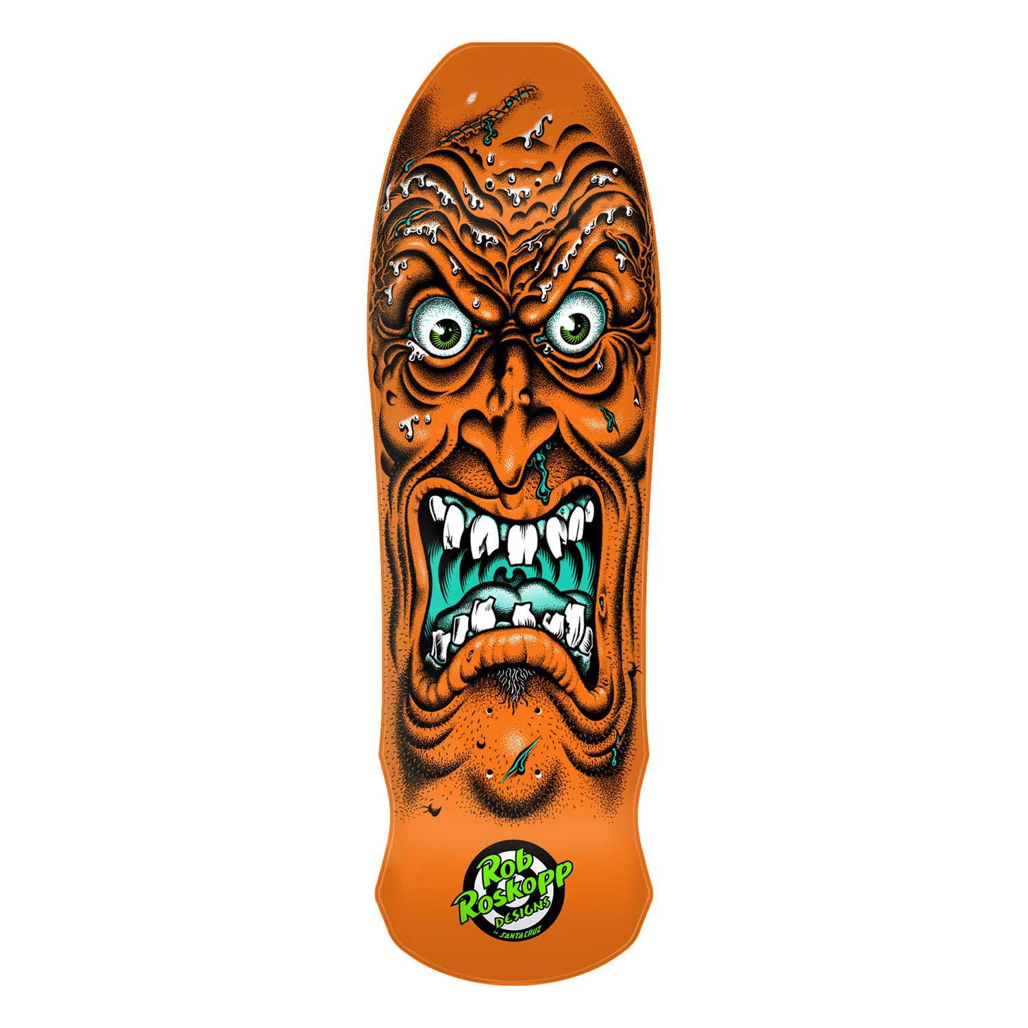 Santa Cruz Skateboards Rob Roskopp Face Reissue deck featuring newly remastered spot matte graphics on full dip orange deck with laser etched 2024 reissue decktop logo. Old School concave is a blast from the past. With a comfortable side to side concave and continuous tail kick OS concave gives you easy foot placement on cruisers, shaped, and old school boards with longer tail than nose. Measures 9.5" x 31" with a 15.355" wheelbase.