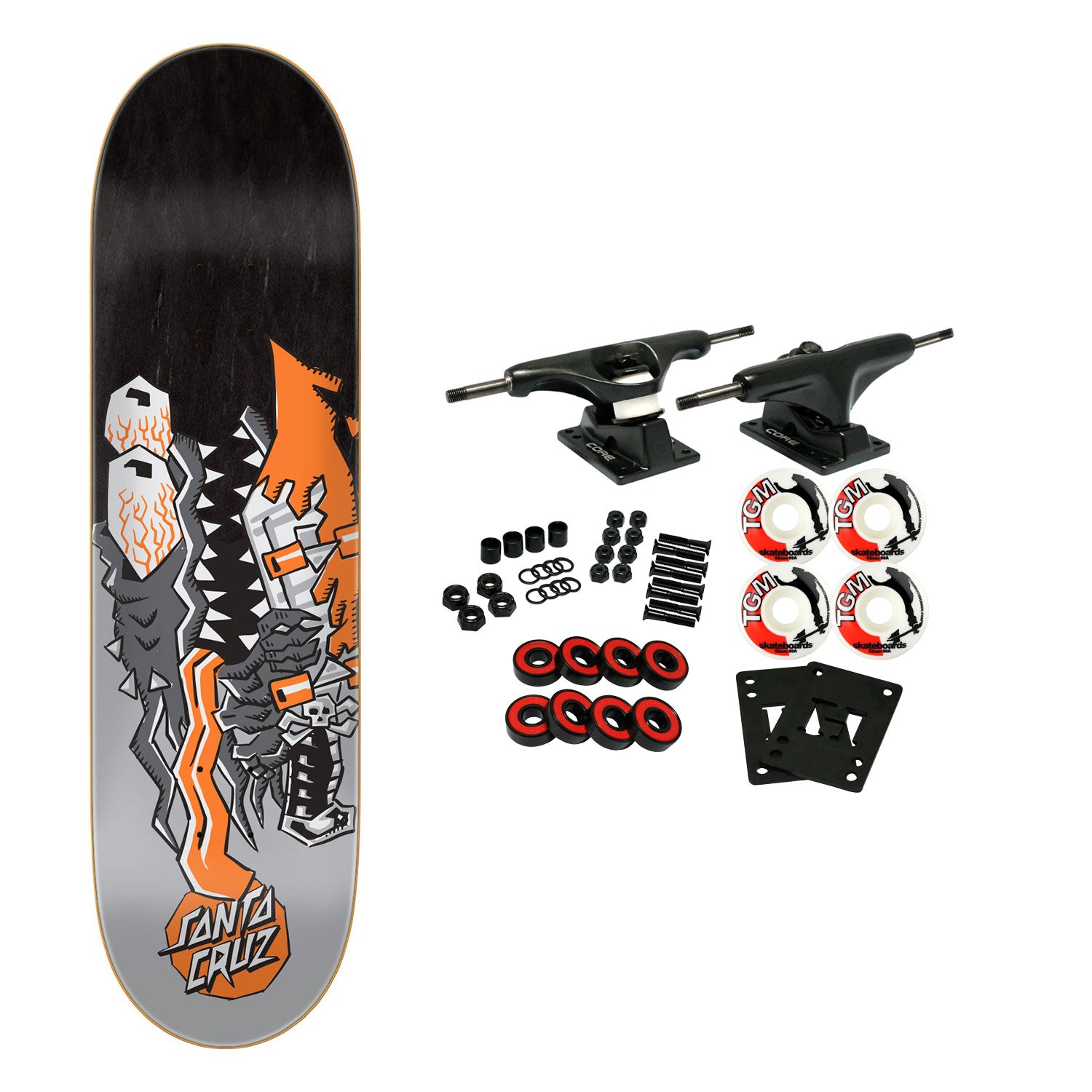 Santa Cruz Keith Meek Scratched Slasher FeelBase deck with 13.5" wheelbase, and spot matte metallic graphics on black stained veneer. 7 ply North American Maple pressed individually using epoxy - making a strong, responsive deck with long lasting pop and consistent concave and kick. ATV-S is a universal medium-depth concave for smaller body types. Featuring symmetrical nose and tail kick, ATV-S performs well in all terrains. Measures 8.25" x 31" with a 13.5" wheelbase. Comes with Core trucks, 52mm TGM logo wheels, Amp abec 5 bearings, Black Diamond Griptape, risers, and hardware. Core trucks are light weight and feature heavy duty aluminum with grade 8 steel kingpins and axles, as well as USA made bushings and pivot cups. 52mm 99A are the perfect wheels for both street and park skating. Like the name states, Amp bearings are stimulants for your wheels! Light synthetic oil, Delrin Crowns, and Rubber Serviceable Shields are a few of the things that makes these bearings one of the best Abec 5 rated bearings on the market. Arrives un-assembled which allows for customization and a feeling of accomplishment. Skaters love building their boards! Easy to assemble!