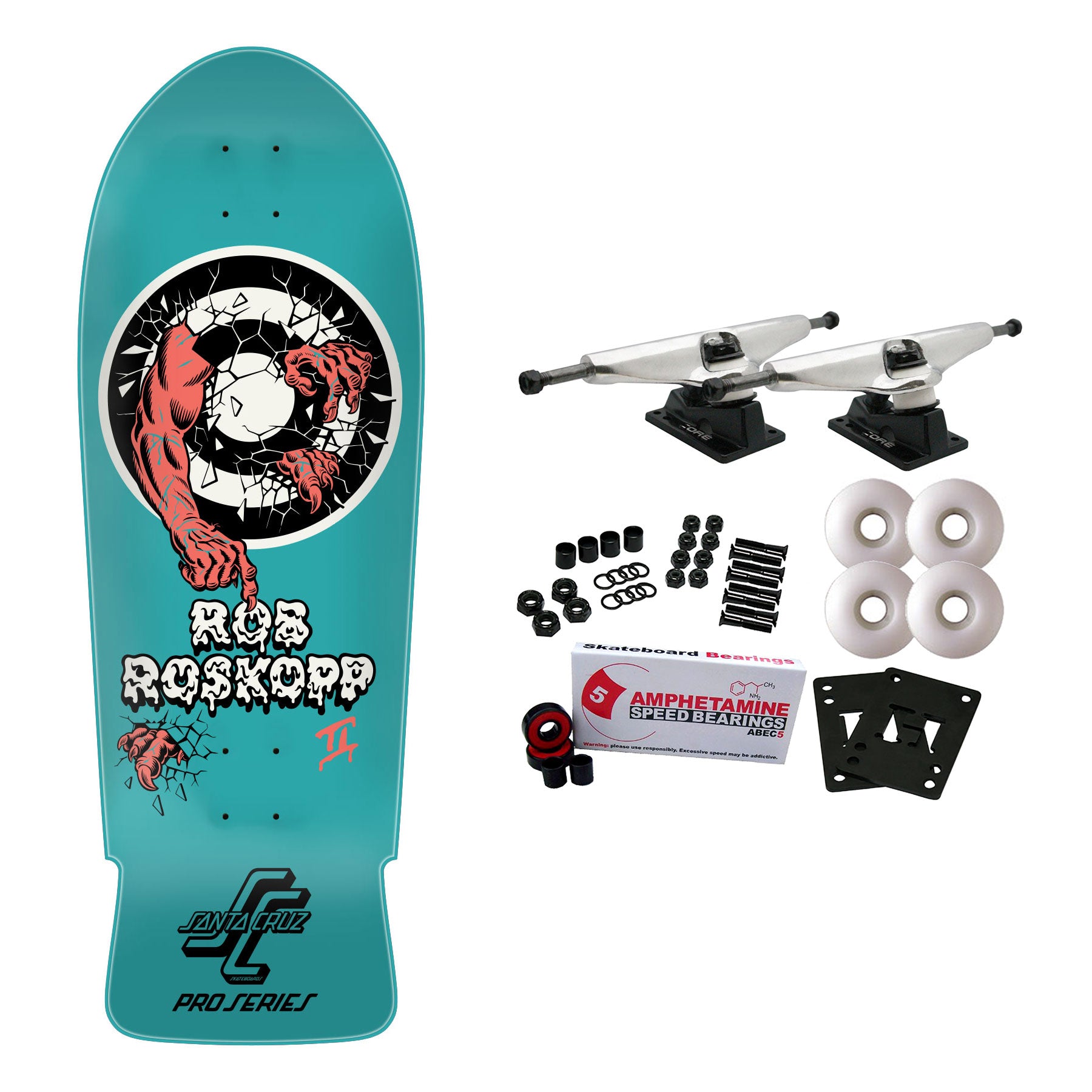 Santa Cruz Skateboards Rob Roskopp II Reissue deck featuring fully remastered spot gloss and matte OG graphics on full dip matte deck in classic pastel color way with 2024 Reissue decktop laser etched logo on newly replicated OG shape with old school hole pattern. 7 ply North American Maple pressed individually using epoxy - making a strong, responsive deck with long lasting pop and consistent concave and kick. Old School concave is a blast from the past. With a comfortable side to side concave and continuous tail kick OS concave gives you easy foot placement on cruisers, shaped, and old school boards with longer tail than nose. Comes with Core trucks, 58mm 97A wheels, Amp abec 5 bearings, Black Diamond Griptape, risers, and hardware. Core trucks are light weight and feature heavy duty aluminum with grade 8 steel kingpins and axles, as well as USA made bushings and pivot cups. 58mm 97A are the perfect wheels for both street and park skating. Like the name states, Amp bearings are stimulants for your wheels! Light synthetic oil, Delrin Crowns, and Rubber Serviceable Shields are a few of the things that makes these bearings one of the best Abec 5 rated bearings on the market. Arrives un-assembled which allows for customization and a feeling of accomplishment. Skaters love building their boards! Easy to assemble!