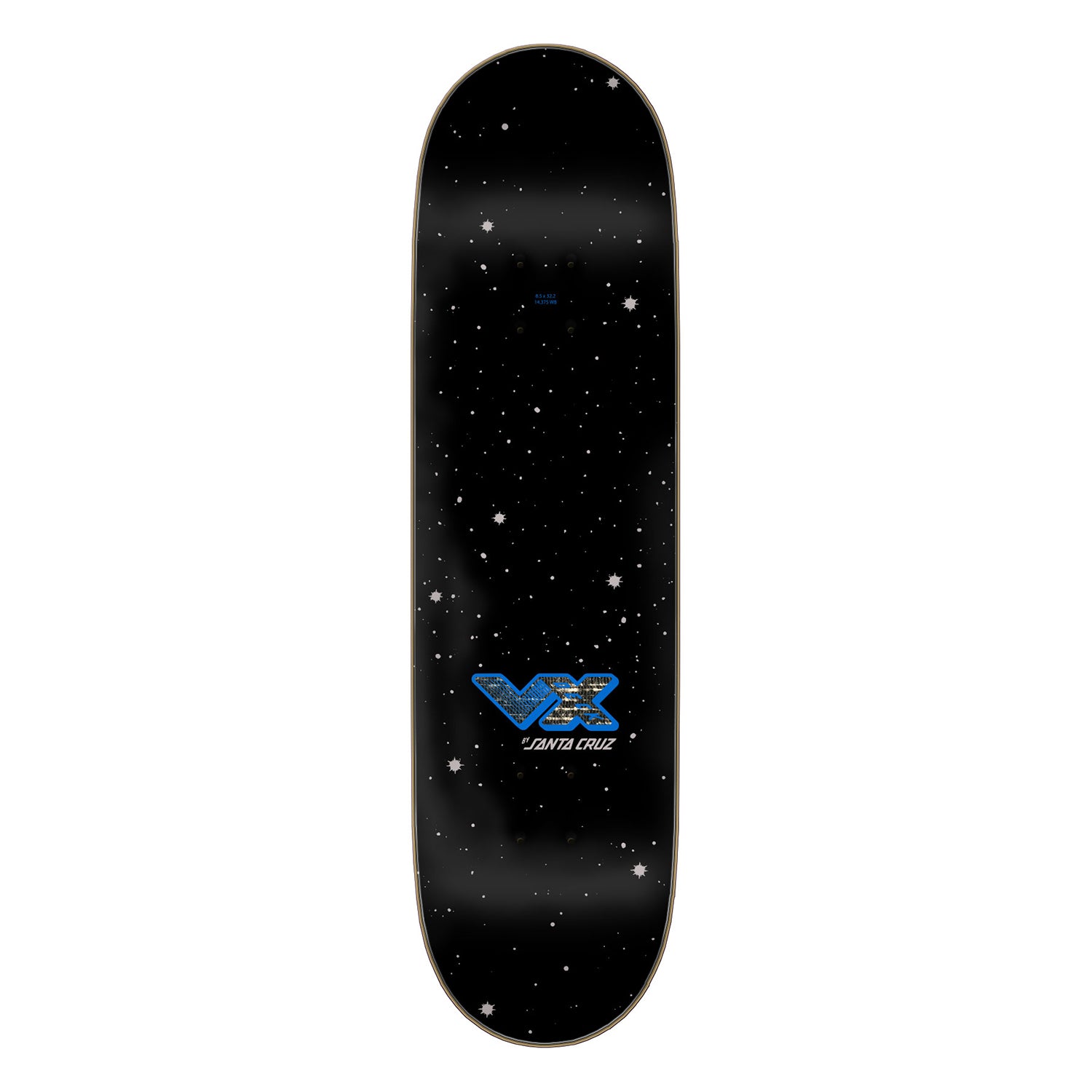 The Santa Cruz Skateboards Wooten Part Two VX Deck features VX deck construction, 14.375" wheelbase and silver rainbow prismatic foil artwork on black matte deck bottom and all over cosmic artwork on black deck top. This board measures 8.5" x 32.2" with a 14.375" wheelbase. VX decks are thinner, stronger, and have more pop than standard 7 ply decks featuring 5 plies of North American Maple and 2 layers of Quad X technology. Comes with Core trucks, 52mm TGM logo wheels, Amp abec 5 bearings, Black Diamond Griptape, risers, and hardware. Core trucks are light weight and feature heavy duty aluminum with grade 8 steel kingpins and axles, as well as USA made bushings and pivot cups. 52mm 99A are the perfect wheels for both street and park skating. Like the name states, Amp bearings are stimulants for your wheels! Light synthetic oil, Delrin Crowns, and Rubber Serviceable Shields are a few of the things that makes these bearings one of the best Abec 5 rated bearings on the market. Arrives un-assembled which allows for customization and a feeling of accomplishment. Skaters love building their boards! Easy to assemble!