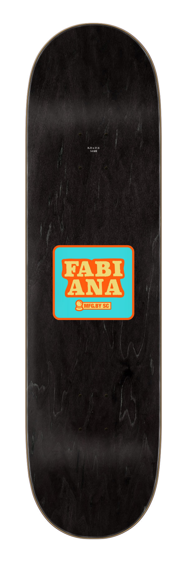 Santa Cruz Skateboards Fabiana Delfino Pro Deck featuring spot matte and gloss graphics with spot transparent packaging art. 7 ply North American Maple pressed individually using epoxy - making a strong, responsive deck with long lasting pop and consistent concave and kick. ATV is a universal medium-depth concave with symmetrical nose and tail kick that performs well in all terrains on a wide variety of shapes - for anybody, anywhere.