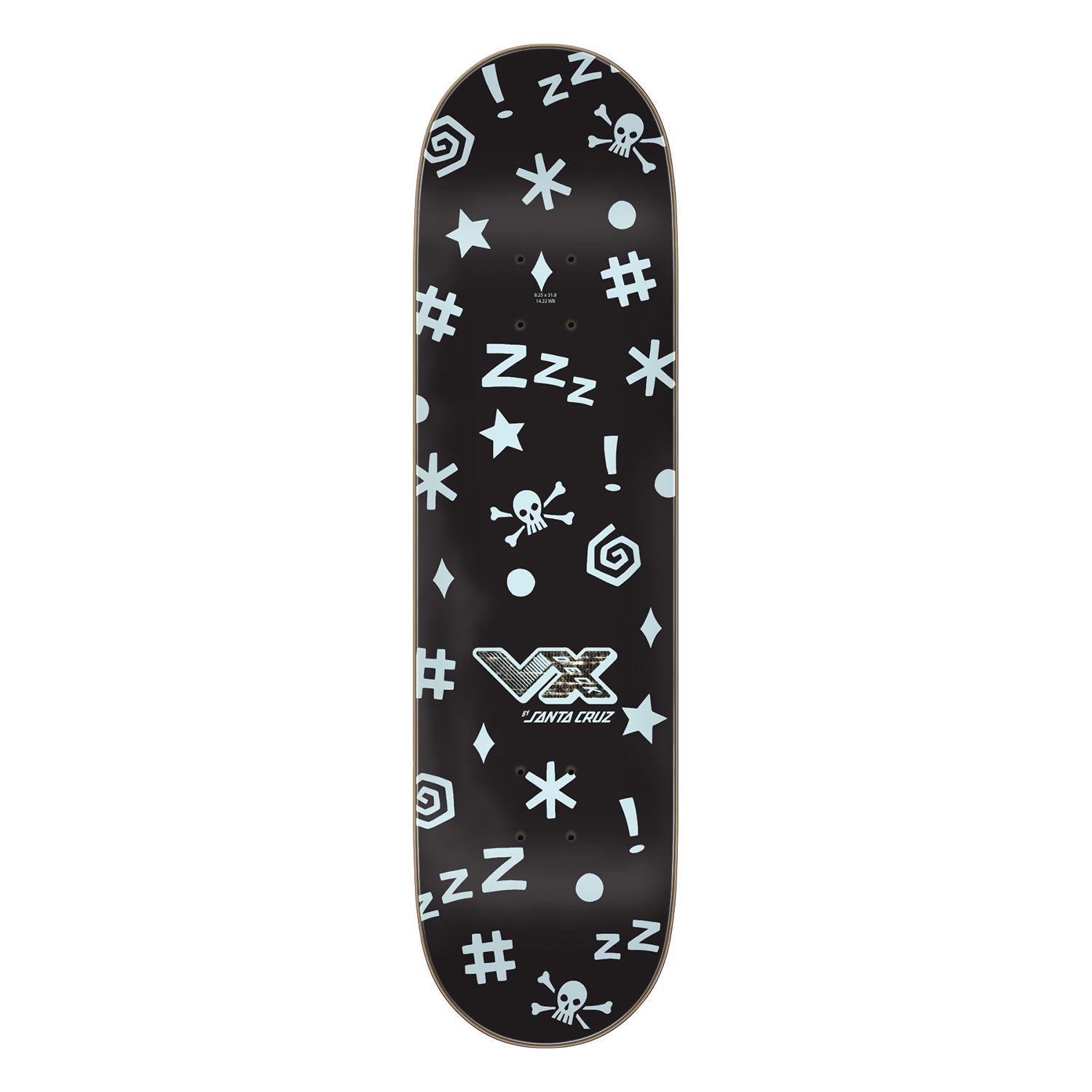 Santa Cruz Skateboards Maurio McCoy Fever Dream VX Deck featuring spot gloss silver quicksand foil graphics. VX decks are thinner, stronger, and have more pop than standard 7 ply decks featuring 5 plies of North American Maple and 2 layers of Quad X technology. ATV is a universal medium-depth concave with symmetrical nose and tail kick that performs well in all terrains on a wide variety of shapes - for anybody, anywhere. Measures 8.25" x 31.83" with a 14.22" wheelbase.