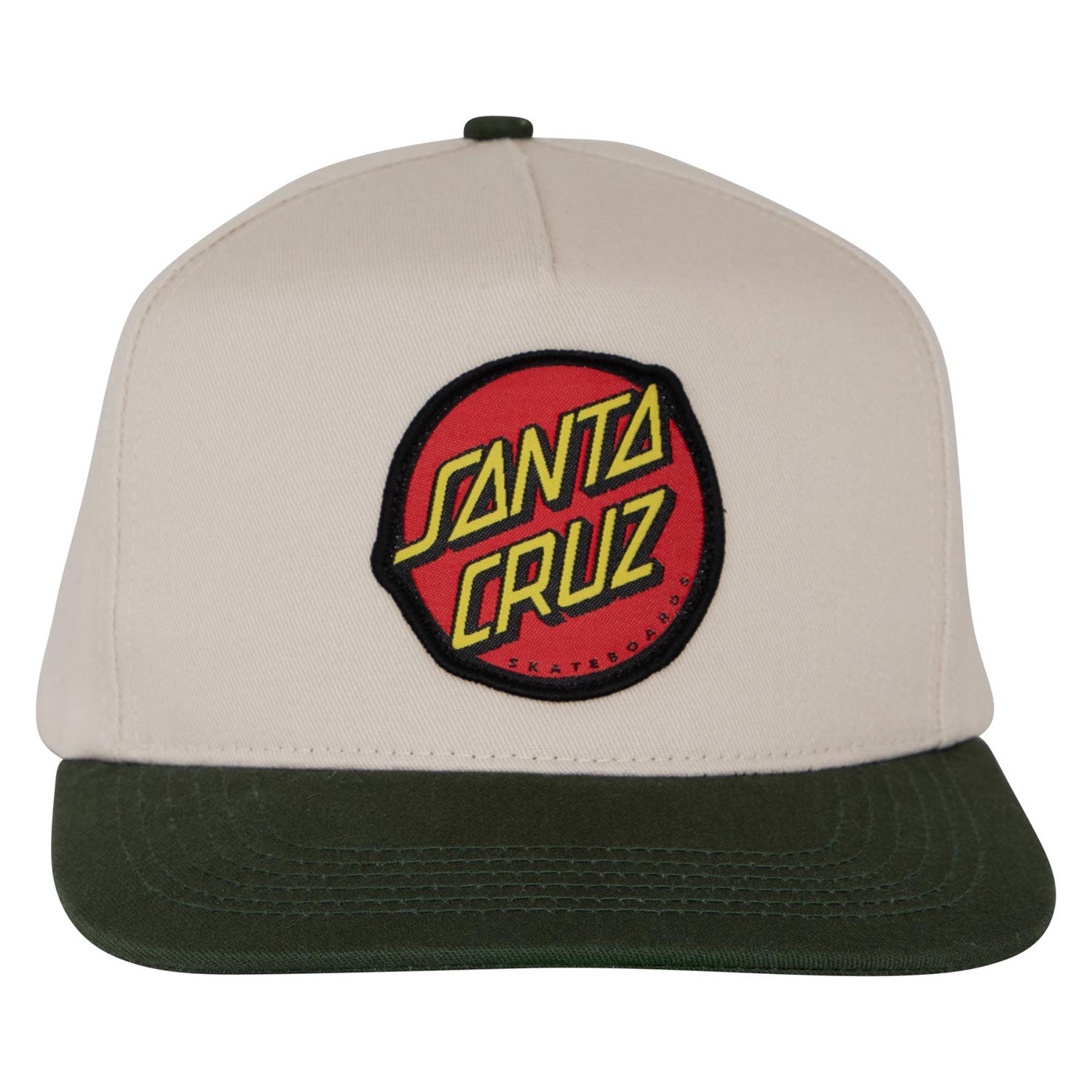 Roll up and stand out in the latest hats and apparel from Santa Cruz Skateboards. The Santa Cruz Classic Dot men's mid profile 5 panel unstructured snapback adjustable hat features contrast visor / button and Classic Dot woven label patch. Santa Cruz has been manufacturing iconic skateboards and apparel since 1973. Innovative skateboards and artwork from the beginning 'til the end.