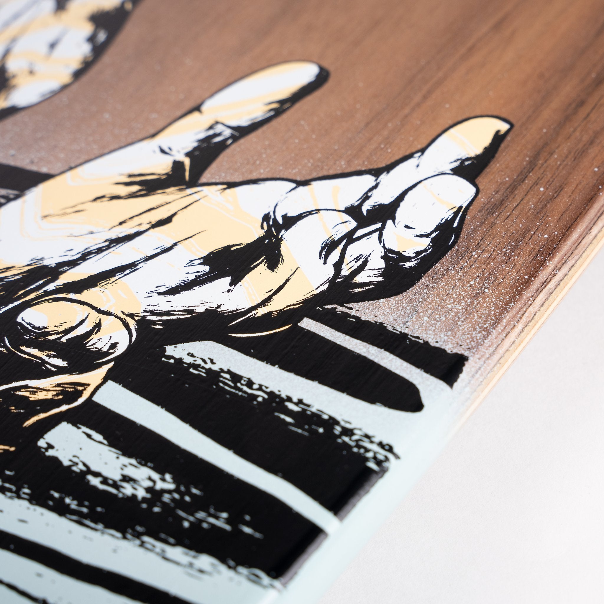 Are you ready to take a trip? Well, you’ve come to the right place. The Journey Walnut Collection is here to expand your consciousness... and your quiver. We tapped artist, Curtis Hadzicki, to create these graphics. He drew slight inspiration from ancient Greek mythology with a psychedelic, Southern California twist. The simple graphic silhouettes serve to provide a stark contrast with the Walnut bottom plies. To further expand these board’s horizons, we sprayed the tails and used clear grip to provide one of our most unique collections to date. RIDING STYLE: Cruiser. DIMENSIONS: Length: 27.5", Width: 7.5", Wheelbase: 14". COMPONENTS: 7.0" Gullwing Mission Trucks, 58mm 78a Nineballs, ABEC 5 Greaseball Bearings, 0.25" Recycled Plastic Risers, 1.25" Hardened Steel Bolts, Clear Grip Tape. FEATURES: 7 Ply Maple, Walnut Bottom Veneer, Faded Dipped Tail, Two-Tone Swirled Wheels, Kicktail, Art by Curtis Hadzicki.