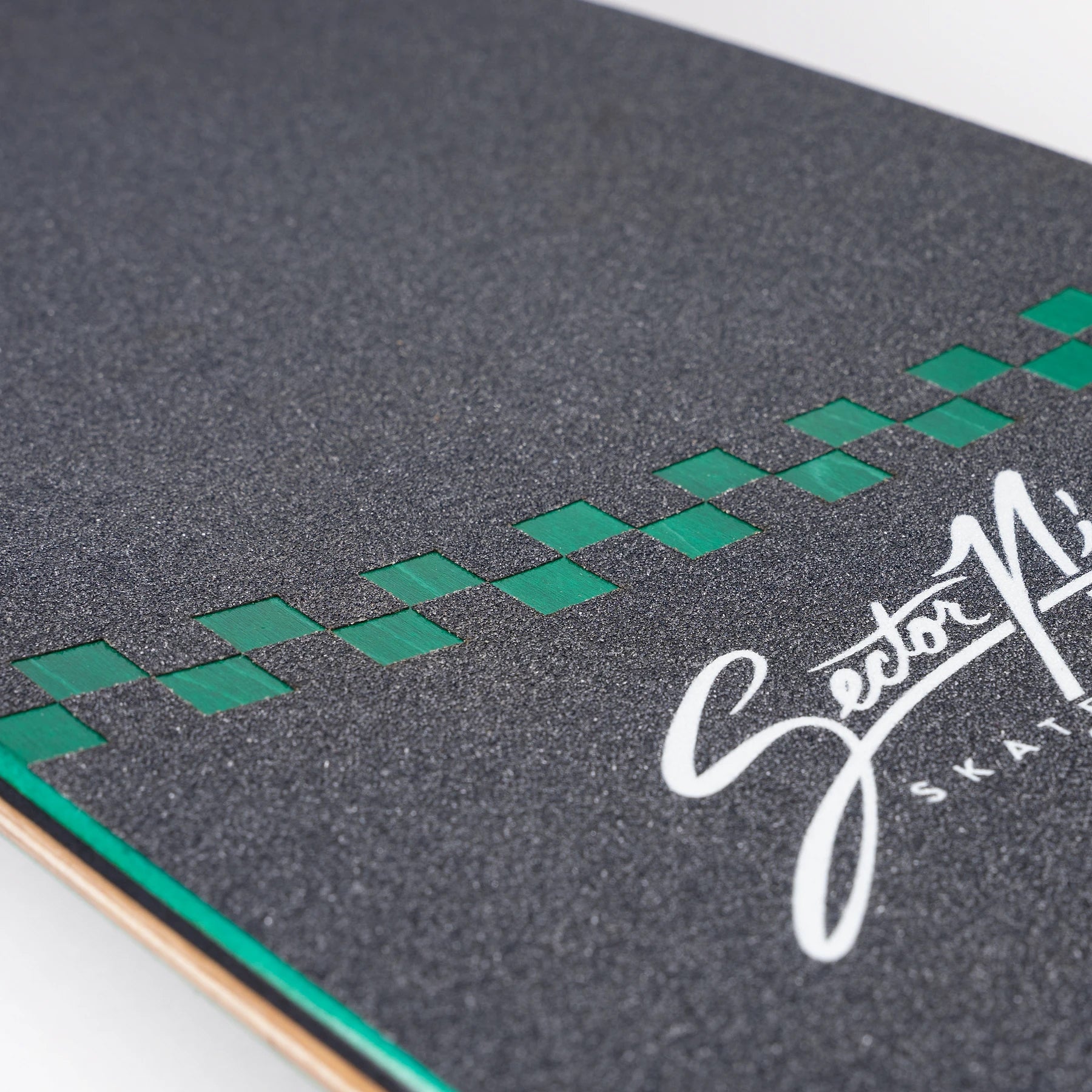 For the new Mosaic Collection, we took inspiration from classic 70’s, Southern California style. The black Maple bottom plies are covered in subtle checkers, and clean, white lines reminiscent of the adolescence of the surf/skate scene. RIDING STYLE: Park, Cruiser. DIMENSIONS: Length: 30", Width: 9.8", Wheelbase: 16". COMPONENTS: 8.5" Gullwing Pro III Trucks, 61mm 78a Nineballs, ABEC 5 Greaseball Bearings, 0.25" Recycled Plastic Risers, 1.25" Hardened Steel Bolts, Regular Grip Tape. FEATURES: 7 Ply Maple, Die-Cut Colored Maple Inlay, Black Maple Bottom Veneer, 80's Inspired Shape, Die-Cut Grip with Grip Print, Kicktail.