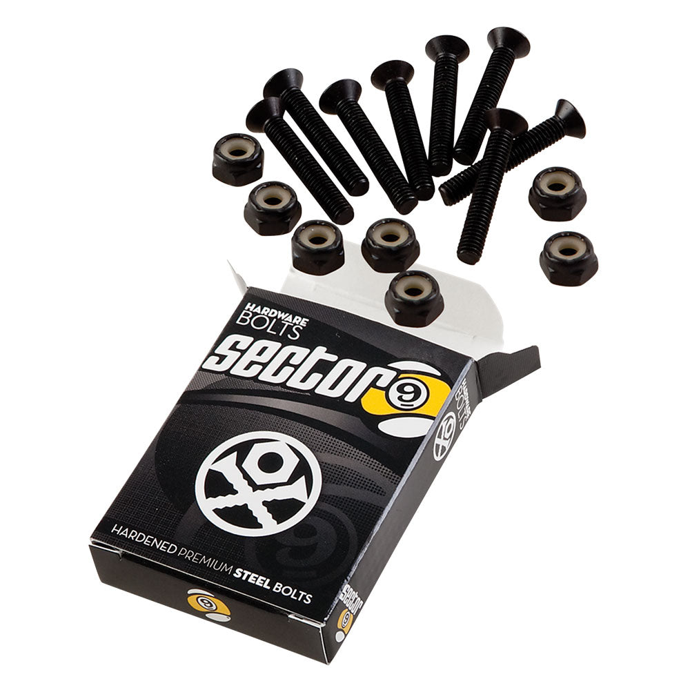 Sector 9 Hardware is made from the highest grade steel. It's unquestioned strength and unmatched durability are just what youo'd expect from a company dedicated to bringing you the world's best skateboards and accessories. Includes 8 1 1/4" Phillips head mounting bolts with lock nuts.