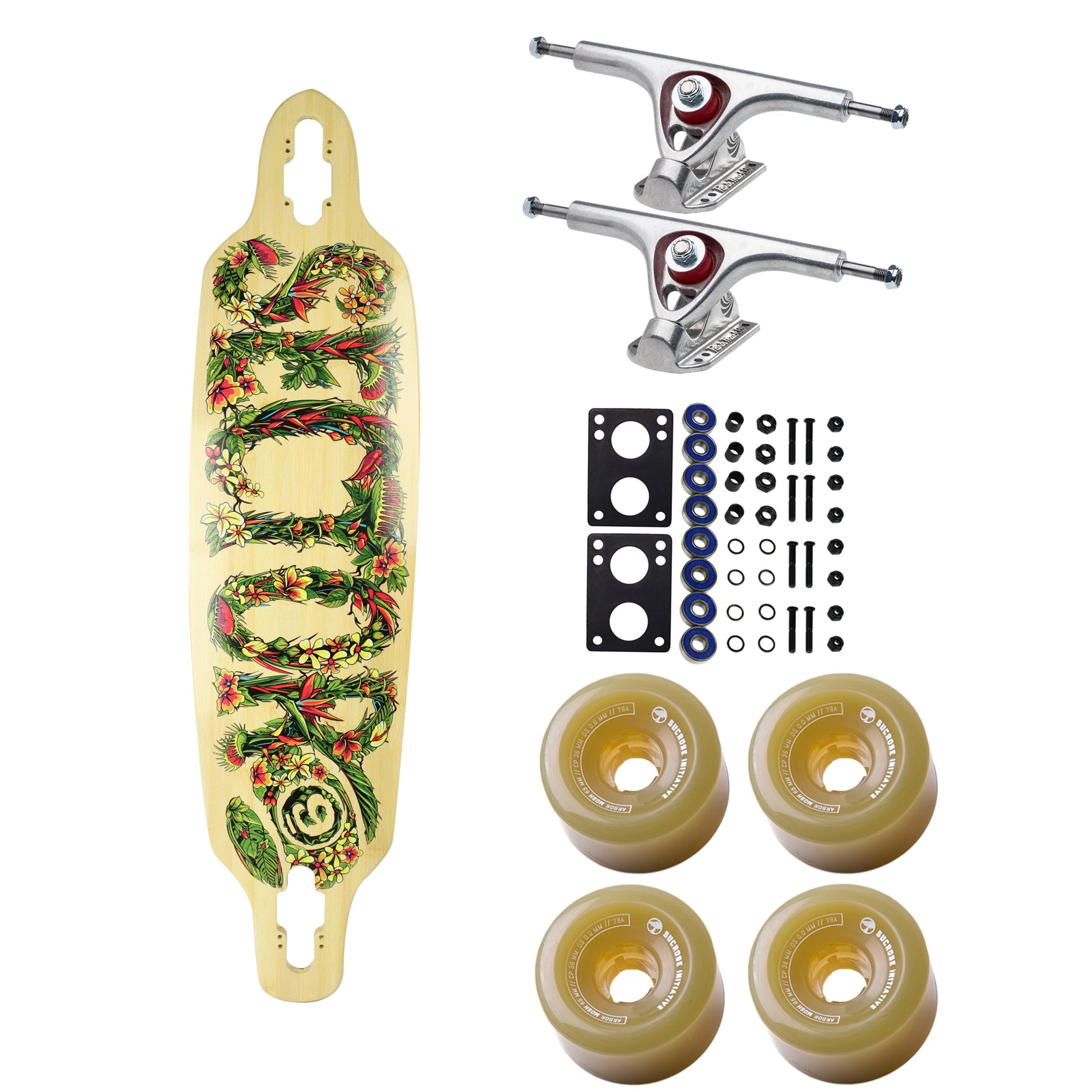 RIDING STYLE: Carving. DIMENSIONS: Length: 36", Width: 9.0", Wheelbase: 23.3". FEATURES: 5 ply Bamboo, Drop Thru, Clear Grip, Carmelized Inlay Stringer, Art by Kenny Vidinich. COMPONENTS: Paris 180mm 43 Degree V3 Reverse Kingpin Havoc Trucks, 65mm 78A Arbor Wheels, Abec 7 Bearings, all neccesary hardware for completion. This package comes with all parts to assemble your longboard. Arrives un-assembled which allows for customization and a feeling of accomplishment. Skaters love building their boards! Easy to assemble!