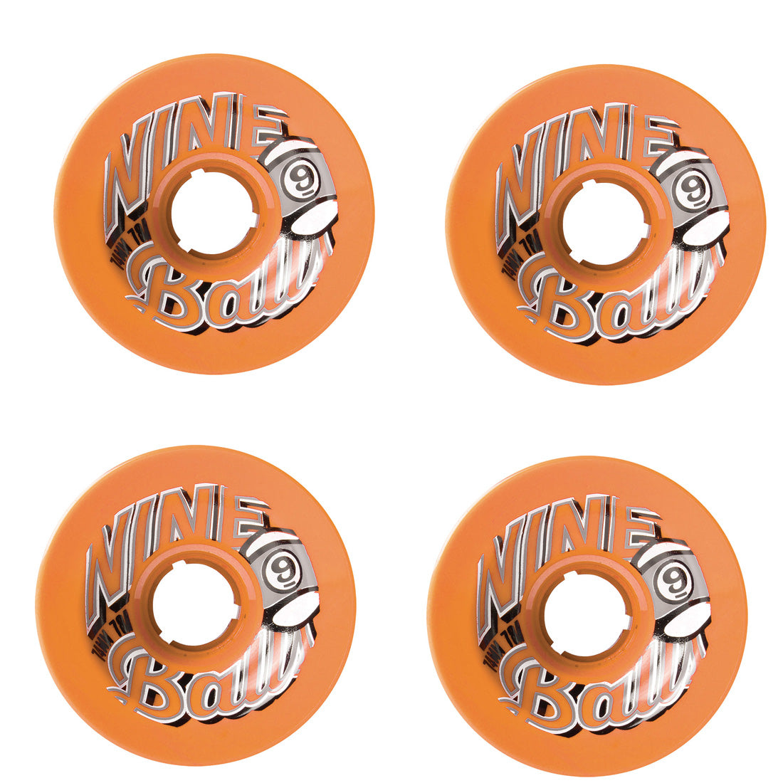 Nineballs have been a long-time favorite of skaters from all walks of life. From cruising kids to freeriding chargers. All these wheels provide good roll speed. 74mm Diameter, 78A Durometer, 50mm Contact Patch. Nineball Urethane, Better Roll Speed, Sharp Lip Shape for Extra Grip, Offset Core, Natural Finish Provides Extra Grip, Larger Size Rolls Over Debris and Imperfections, Larger Size Helps Hold Speed Longer.