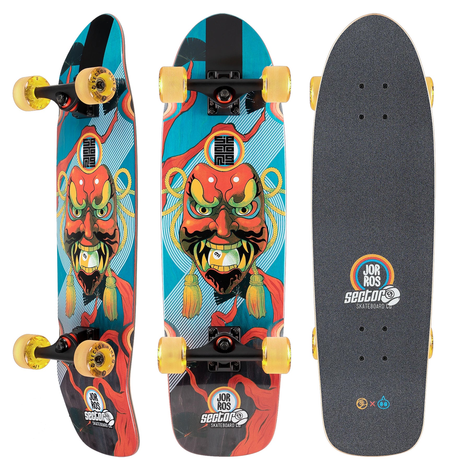 This board features: 7 Ply Maple, Two-Color Dipped Maple Bottom Ply, Printed Grip Tape, Double Kick. Measures 8.625" x 30.5" with a 14.85" wheelbase. Includes: 8.5” Gullwing Shadow Trucks, 61mm 78a Nineballs, ABEC 5 Greaseball Bearings, 0.25” Recycled Plastic, Risers, 1.25" Hardened Steel Bolts, Regular Grip Tape. Art by Jor Ros. Jor Ros grew up moving back and forth between Mexico and the U.S. and would spend his free time making up characters and creating fictional universes though his drawings. Today, the Barcelona-based artist has developed a portfolio of digital illustrations that imagine the contemporary urban samurai warrior, borrowing the motifs and aesthetic hallmarks of traditional Japanese folklore and American cartoons through a warm, eye grabbing palette. We’re stoked to introduce Jor as our latest featured Artist, and bring some unique Far East style to Sector 9's West Coast craftsmanship.