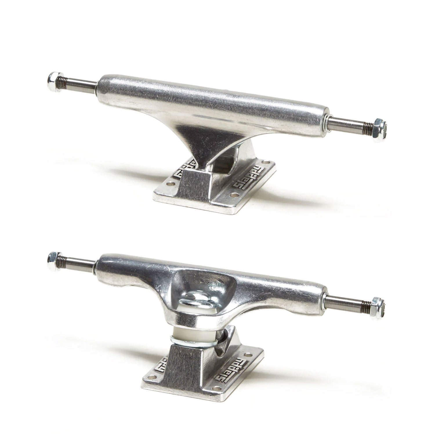 Inverted ST1 Classic Trucks feature the inverted kingpin, polished silver hangers, and polished silver baseplates.