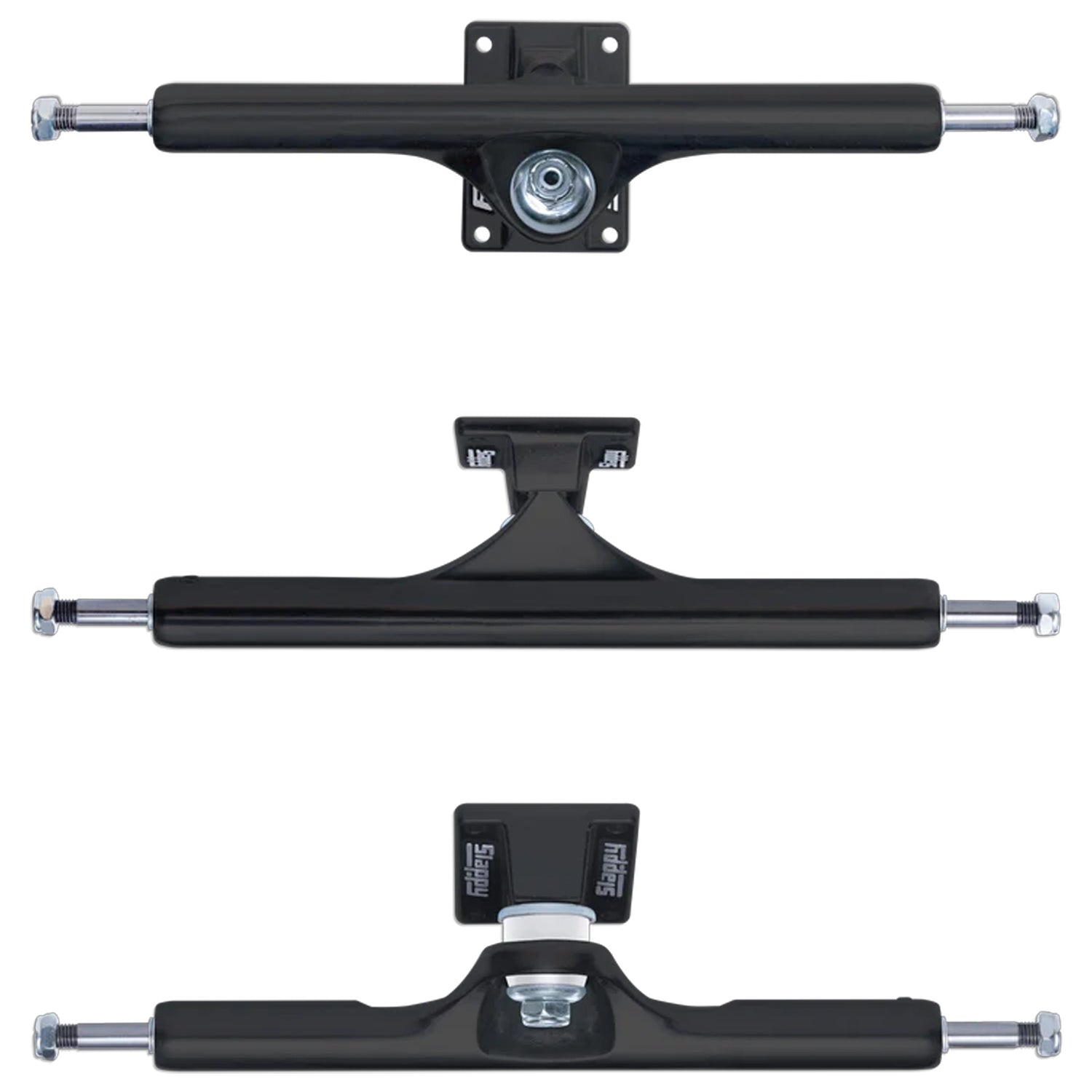 ST1 Hollow Trucks feature a hollow kingpin, hollow axle, polished silver hangers, and polished silver baseplates.