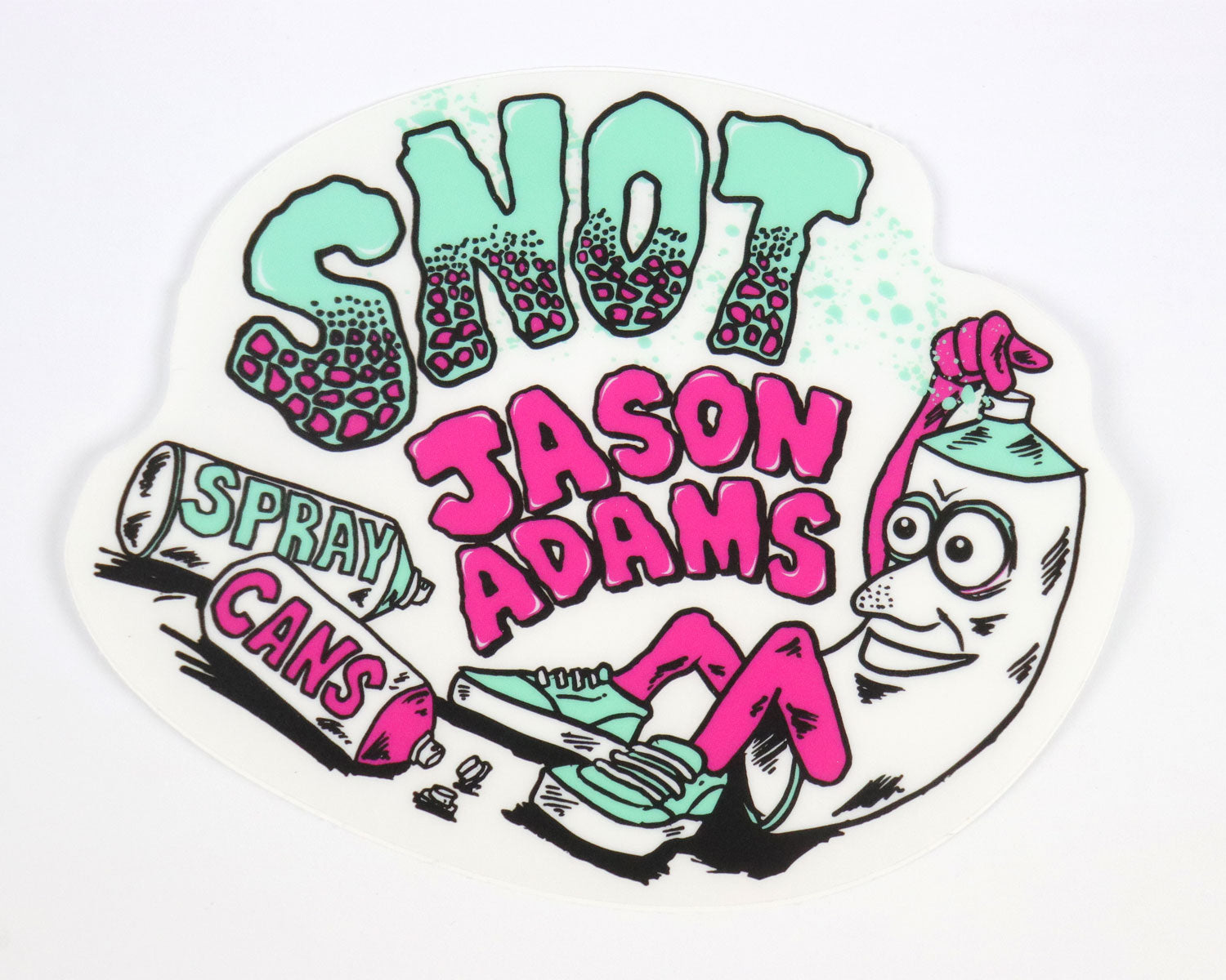 Snot Wheel Co. Sticker featuring Jason Adams Spray Cans graphics. Measures 4.5" x 3.5"