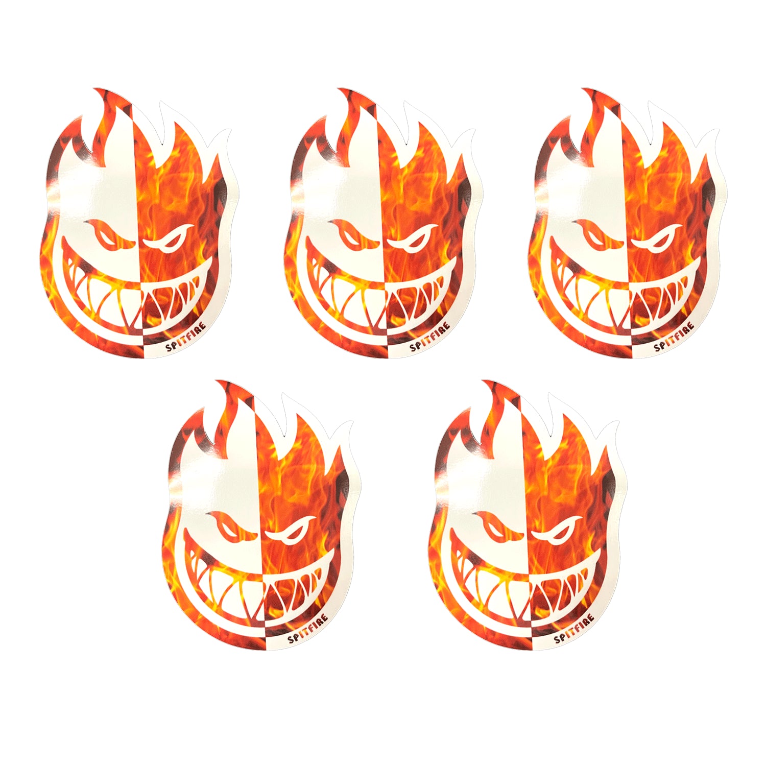 Spitfire Wheels Mylar Skateboard Stickers Two Tone Flame White/Orange 4.5" x 6" 5-Pack
