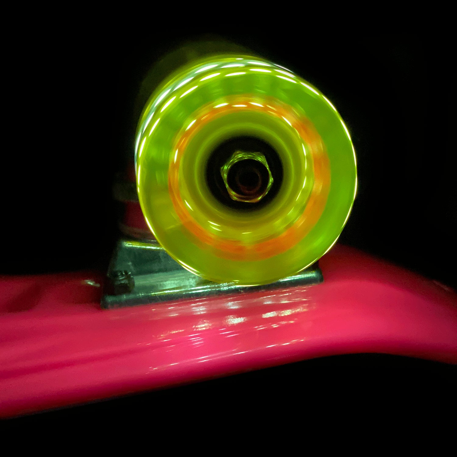 The Beach Board 22” Glow looks like a common beach Board but the magic is only revealed when the sun goes down. The Beach Board series is both fun and cool to ride. Take one of these along with you in your backpack and have a lot of fun. Measures 6.3” x 22.5”. Features a PP traction pattern deck with embossed aluminum 3.25 trucks and 60mm cruiser wheels with abec 7 bearings.