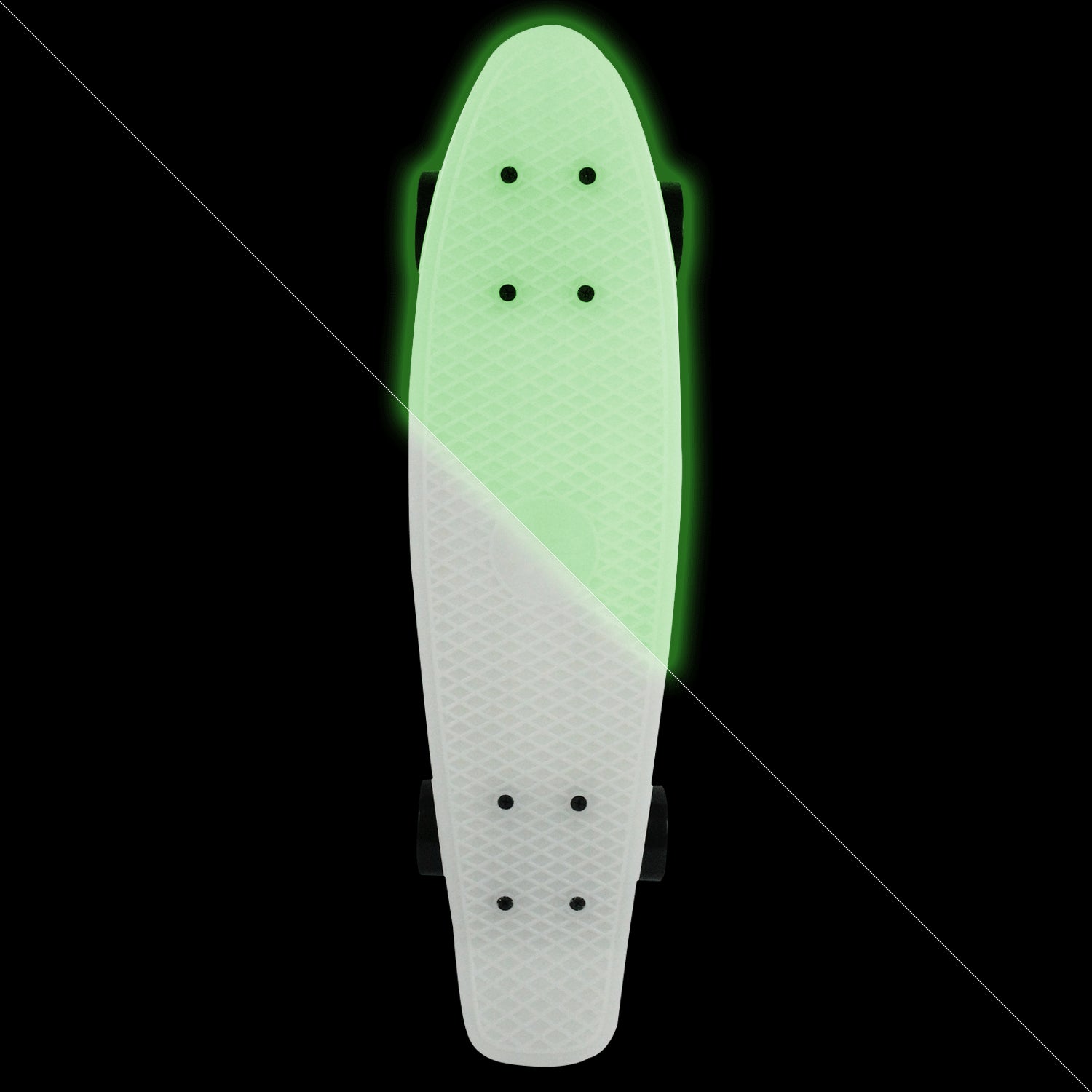 The Beach Board 22” Glow looks like a common beach Board but the magic is only revealed when the sun goes down. The Beach Board series is both fun and cool to ride. Take one of these along with you in your backpack and have a lot of fun. Measures 6.3” x 22.5”. Features a PP traction pattern deck with embossed aluminum 3.25 trucks and 60mm cruiser wheels with abec 7 bearings.