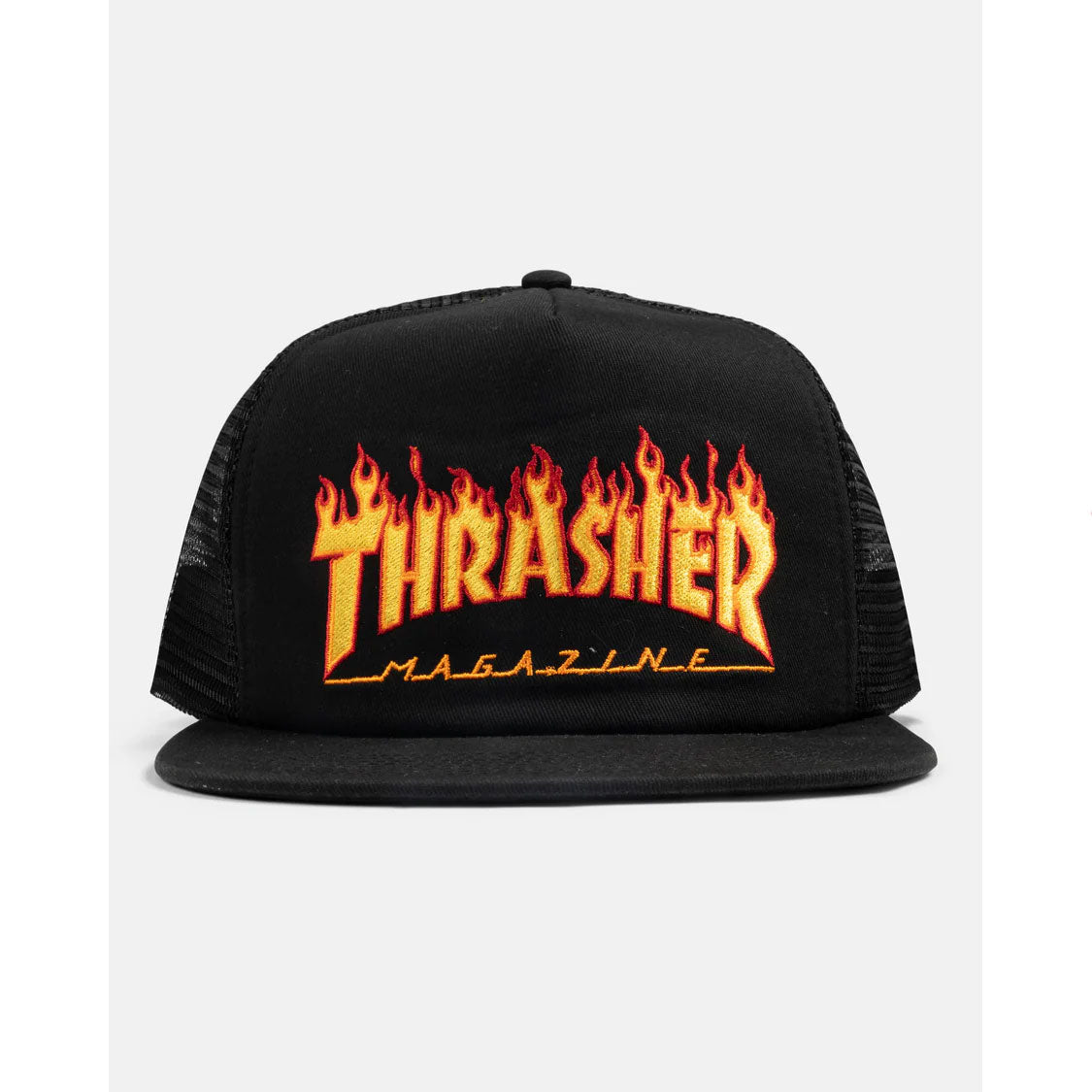 Thrasher Magazine Hat Flame Embroidered Mesh Black