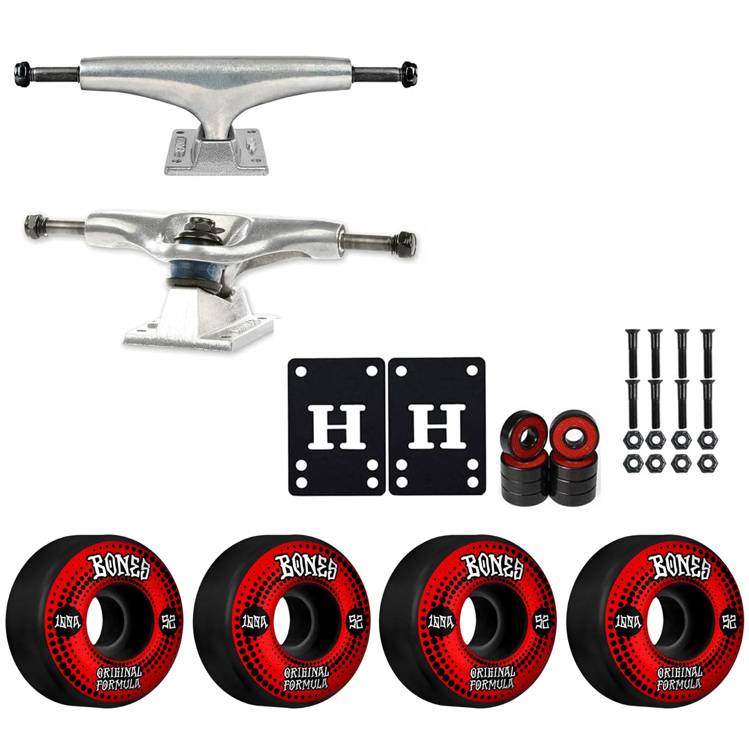 This package contains everything you need to make your deck a complete. Includes a set of Standard Polished Thunder Trucks, Bones 100's Wheels, Amp Abec 5 Bearings, 1" Hardware, and 1/8" Riser pads. Just add a deck and griptape and you are ready to ride!