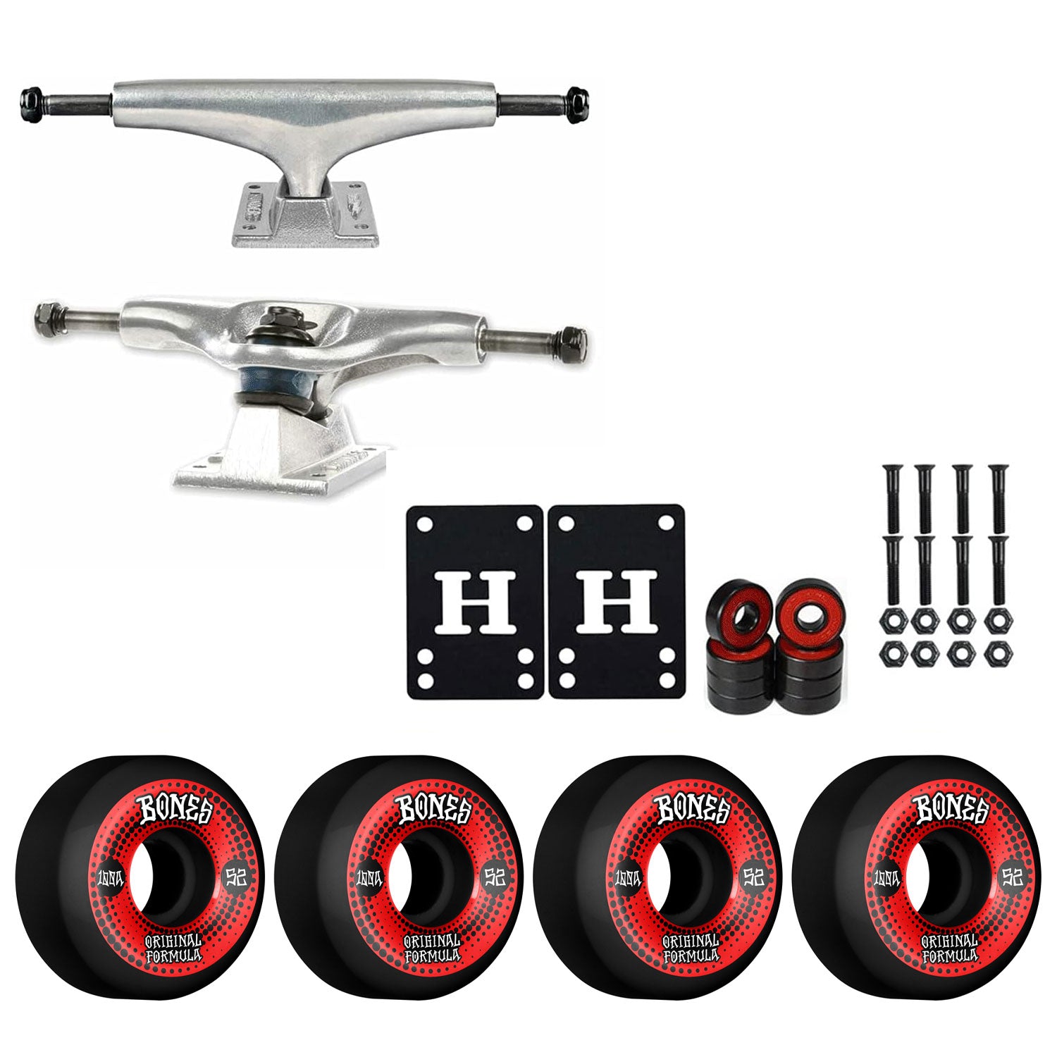 This package contains everything you need to make your deck a complete. Includes a set of Standard Polished Thunder Trucks, Bones 100's Wheels, Amp Abec 5 Bearings, 1" Hardware, and 1/8" Riser pads. Just add a deck and griptape and you are ready to ride!