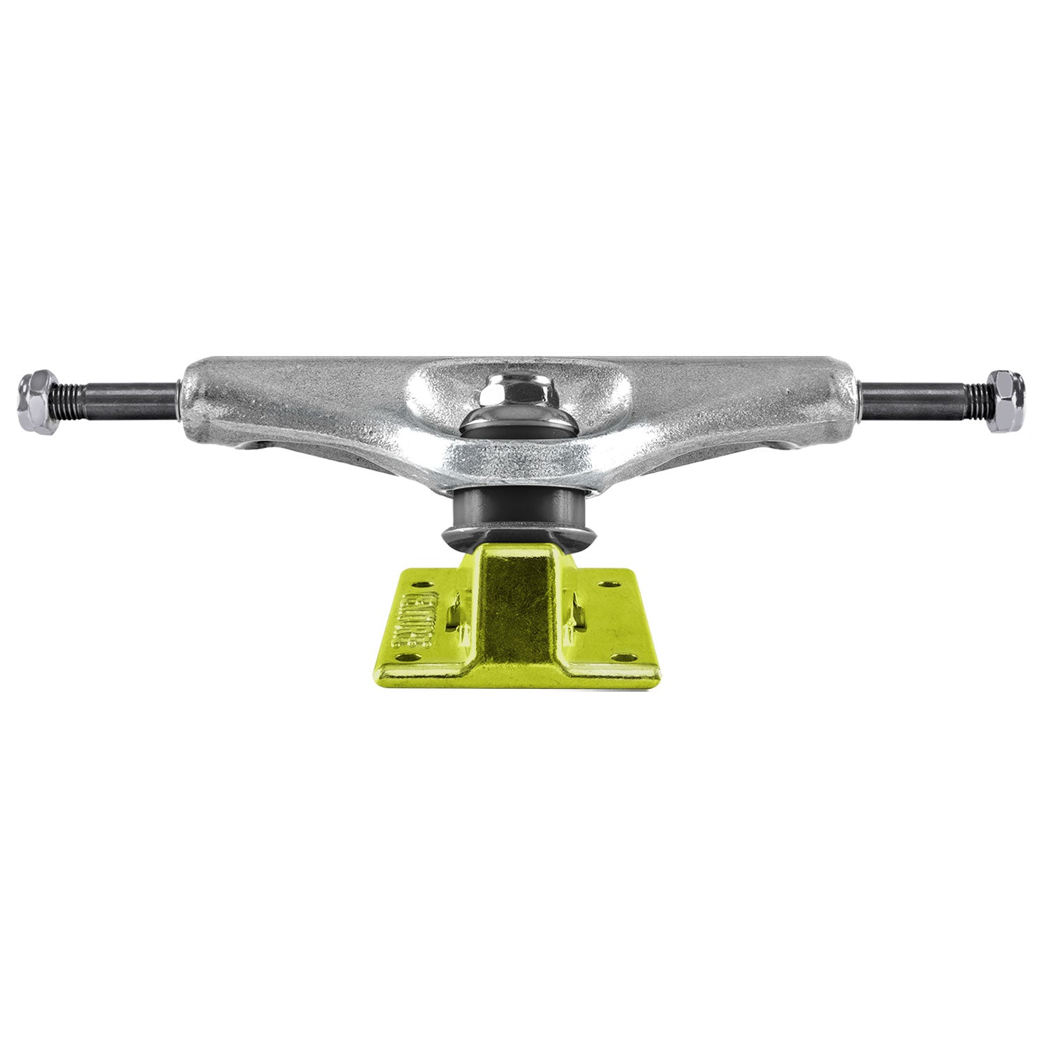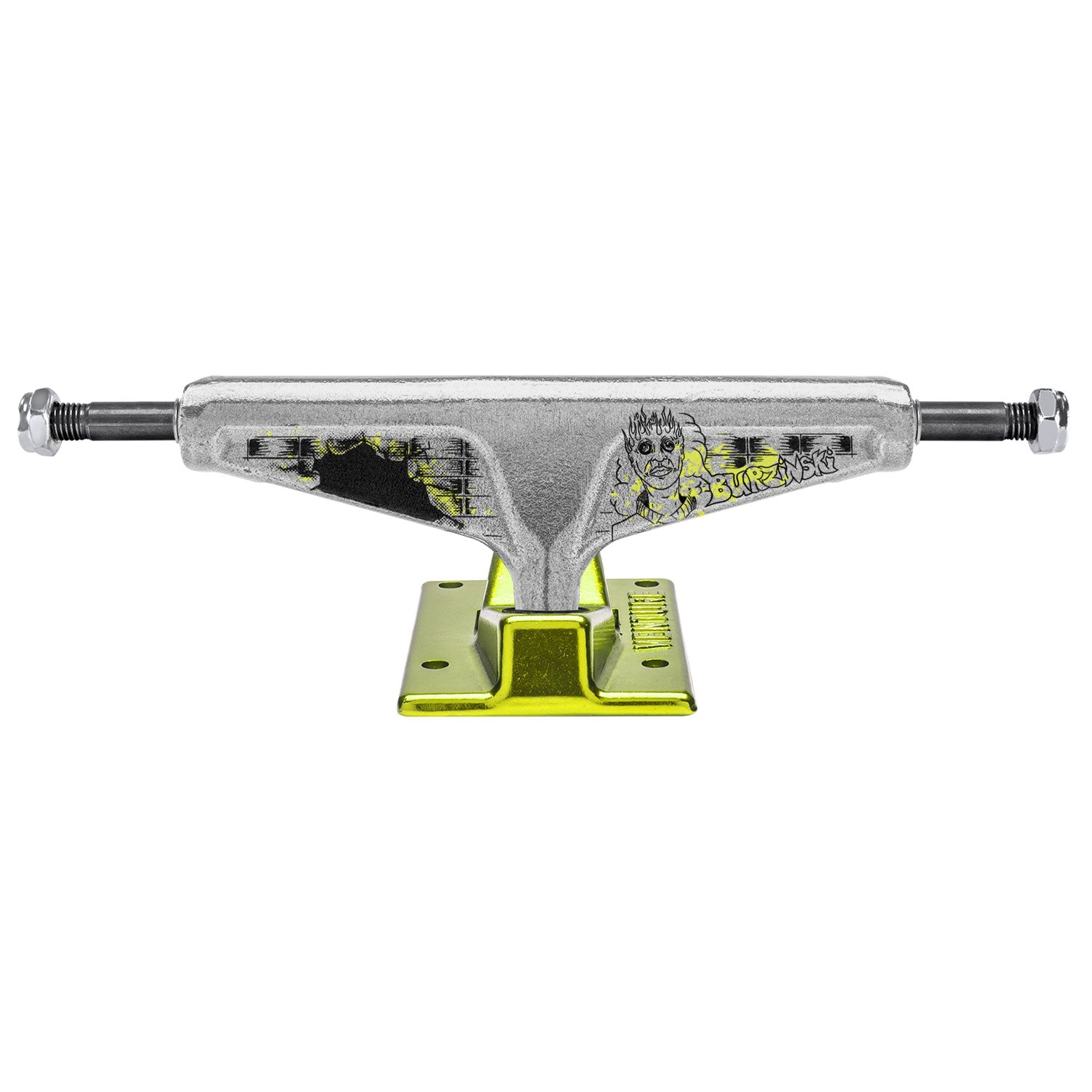 Venture V-Light Tanner Burzinski Awake LTD Polished/Yellow. Features Polished hanger with art by Tanner Burzinski. Forged shocker yellow baseplate. Lightweight by design, ultra quick response & control, premium grade hollow kingpins, custom forged Aluminum baseplate. Hollow Kingpin. Standard Axle. Black Bushings. Venture 5.6 = 8.25" Axle. Includes 2 Trucks.