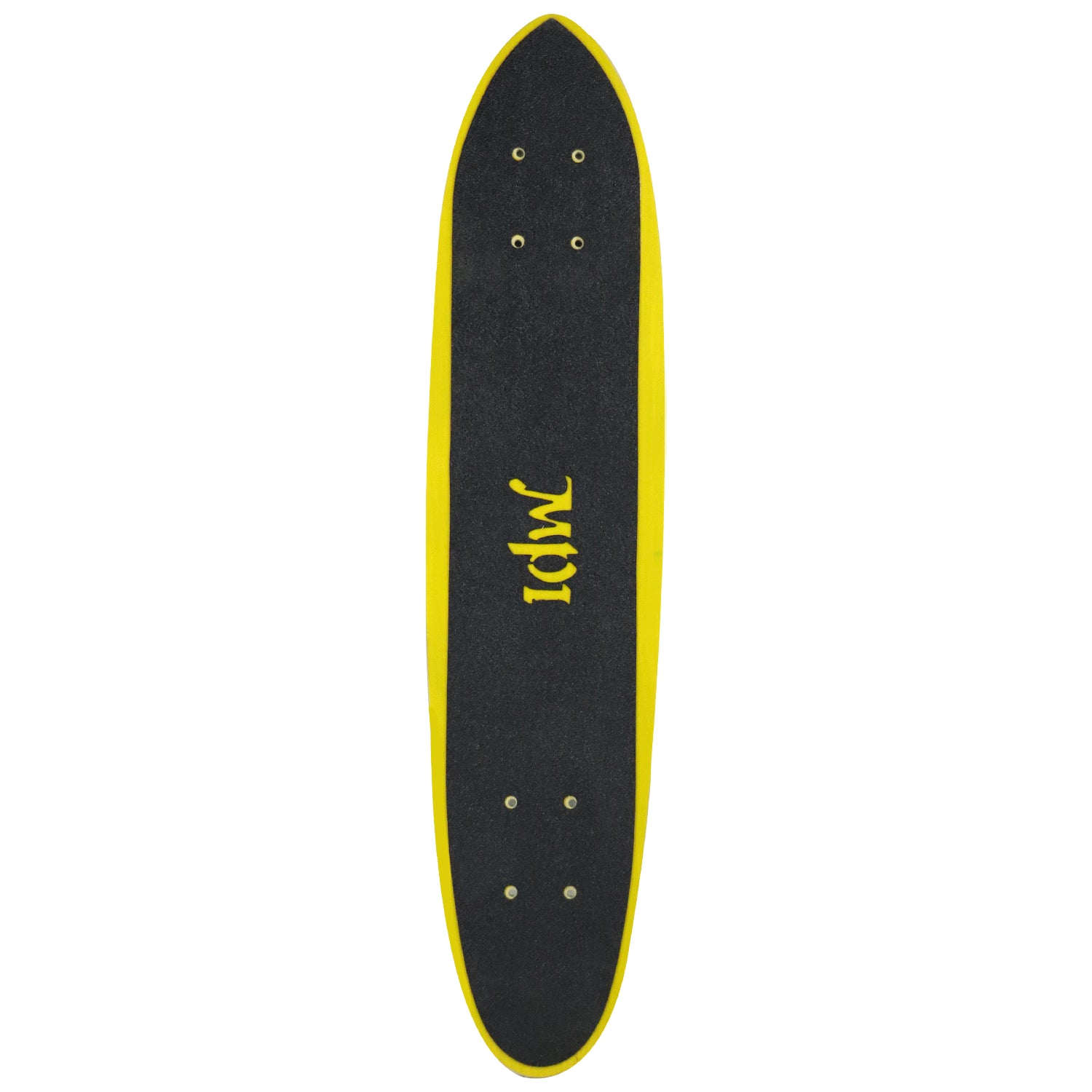 Get your retro style on with this deck originally manufactured by MPI in the 1970's. This model measures 6.5" x 29" with a wheelbase of 15". This deck features a flat, pointed nose with a narrow rounded tail and has a reverse camber shape. Since the board is from the 70's it features the old school hole pattern which is still compatible with many of today's modern trucks (if they have the 6-hole bolt pattern on the base plate). The top includes original die cut griptape. Comprised of a top and bottom layer of fiberglass with wood in the middle, the boards thickness measures 1/4". Buy it to skate or hang, this is a once in a lifetime opportunity to own a brand new skateboard manufactured in the 1970s to original skateboard specs. New old stock. Condition may vary from board to board. Surface wear from age/transportation/storage.