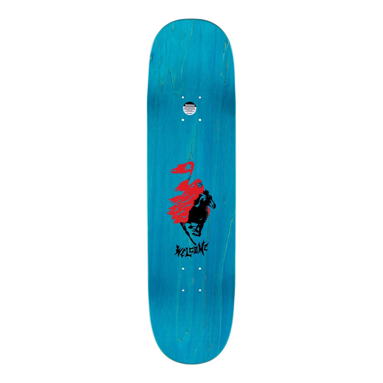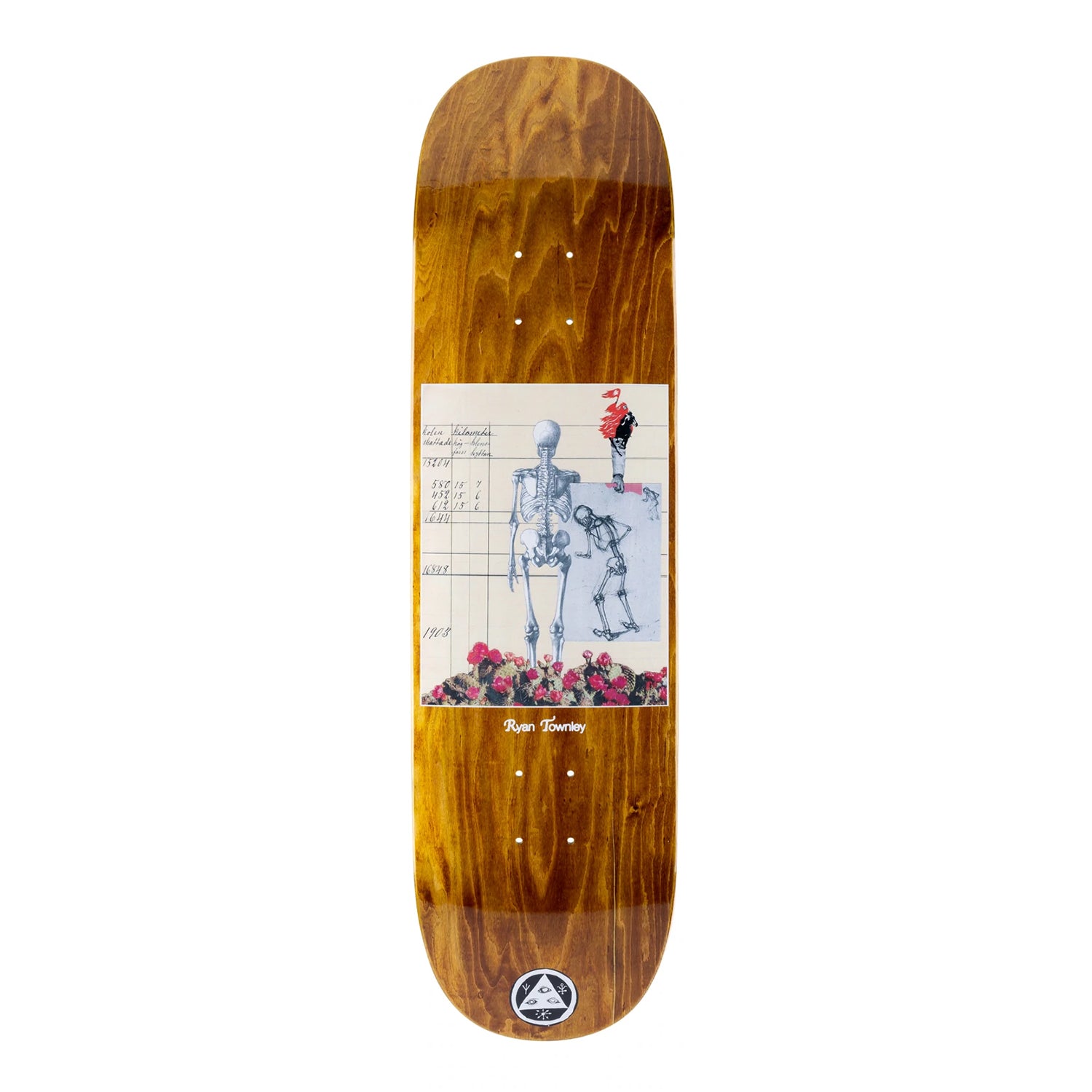 This board comes in Assorted Colors. Welcome decks are produced with premium 7-Ply North American Maple. Custom shape designed and ridden by Ryan Townley. Clear raised-ink skeleton over collage artwork. 8.5" x 32.38". 14.38" Wheelbase. Rides like an 8.5" Popsicle. Artwork by Ryan Townley.