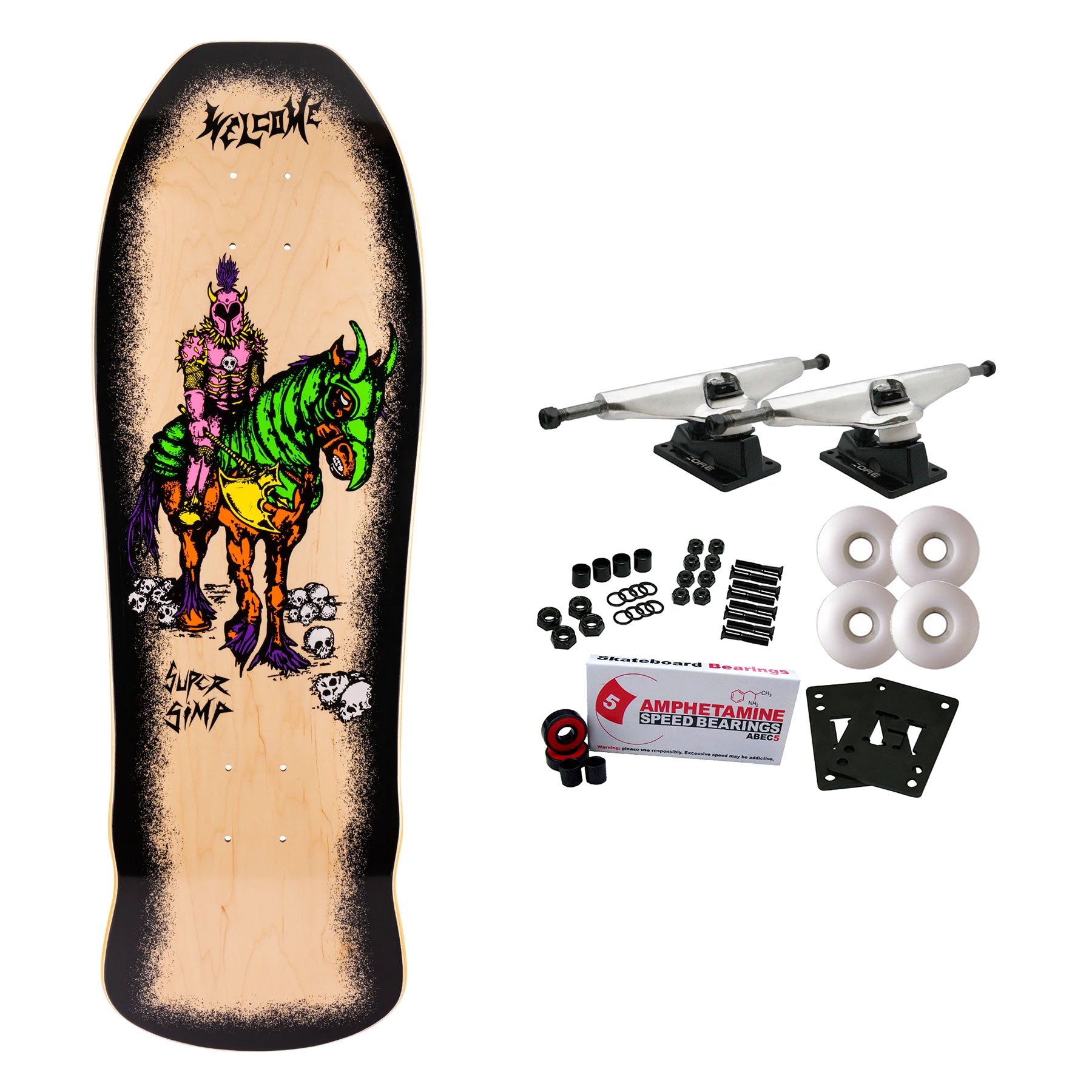 Welcome decks are produced with premium 7-Ply North American Maple. 10.0" x 31.95". 15.5" Wheelbase. Late 80s-inspired shape with a modern concave and just enough nose for trickery. Art by Jason Celaya. Comes with Core trucks, 58mm 97A wheels, Amp abec 5 bearings, Black Diamond Griptape, risers, and hardware. Core trucks are light weight and feature heavy duty aluminum with grade 8 steel kingpins and axles, as well as USA made bushings and pivot cups. 58mm 97A are the perfect wheels for both street and park skating. Like the name states, Amp bearings are stimulants for your wheels! Light synthetic oil, Delrin Crowns, and Rubber Serviceable Shields are a few of the things that makes these bearings one of the best Abec 5 rated bearings on the market. Arrives un-assembled which allows for customization and a feeling of accomplishment. Skaters love building their boards! Easy to assemble!