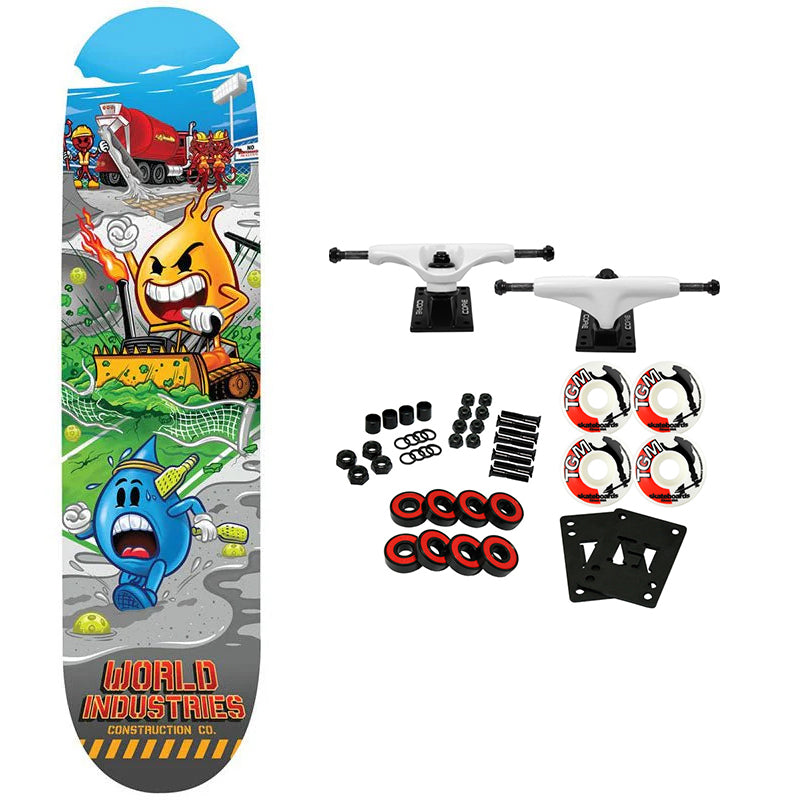 World Industries decks are constructed with Premium, 7-Ply North American maple. This board measures 8.25" x 31.75" with a 14.25" wheelbase. Comes with Core trucks, 52mm TGM logo wheels, Amp abec 5 bearings, Black Diamond Griptape, risers, and hardware. Core trucks are light weight and feature heavy duty aluminum with grade 8 steel kingpins and axles, as well as USA made bushings and pivot cups. 52mm 99A are the perfect wheels for both street and park skating. Like the name states, Amp bearings are stimulants for your wheels! Light synthetic oil, Delrin Crowns, and Rubber Serviceable Shields are a few of the things that makes these bearings one of the best Abec 5 rated bearings on the market. Arrives un-assembled which allows for customization and a feeling of accomplishment. Skaters love building their boards! Easy to assemble!